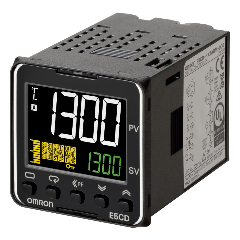 E5CD-QX2DBM-002; Temperature controller, PRO, 1/16 DIN (48 x 48 mm), 1 x 12 VDC pulse OUT, 2 AUX,RS-485, Ht. Burnout SSR fail., 24 VAC/DC
