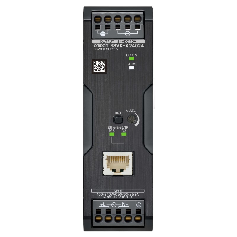 S8VK-X24024-EIP; Book type power supply, 240 W, 24 VDC, 10 A, DIN rail mounting, Push-in terminal, Coated, Ethernet IP / Modbus TCP compatibility