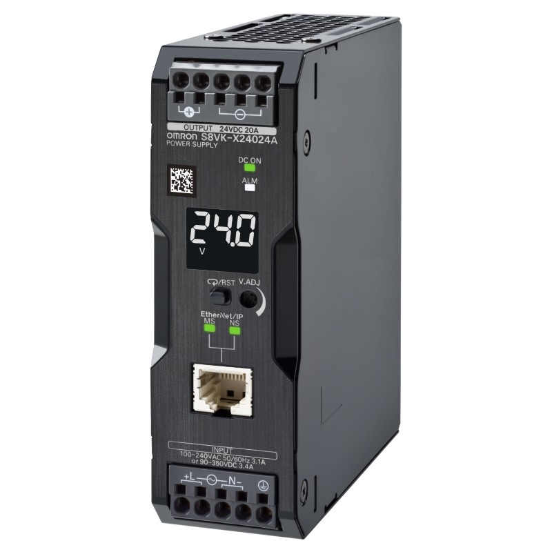 S8VK-X24024A-EIP; Book type power supply, 240 W, 24 VDC, 10 A, DIN rail mounting, Push-in terminal, Coated, display, Ethernet IP / Modbus TCP compatibility