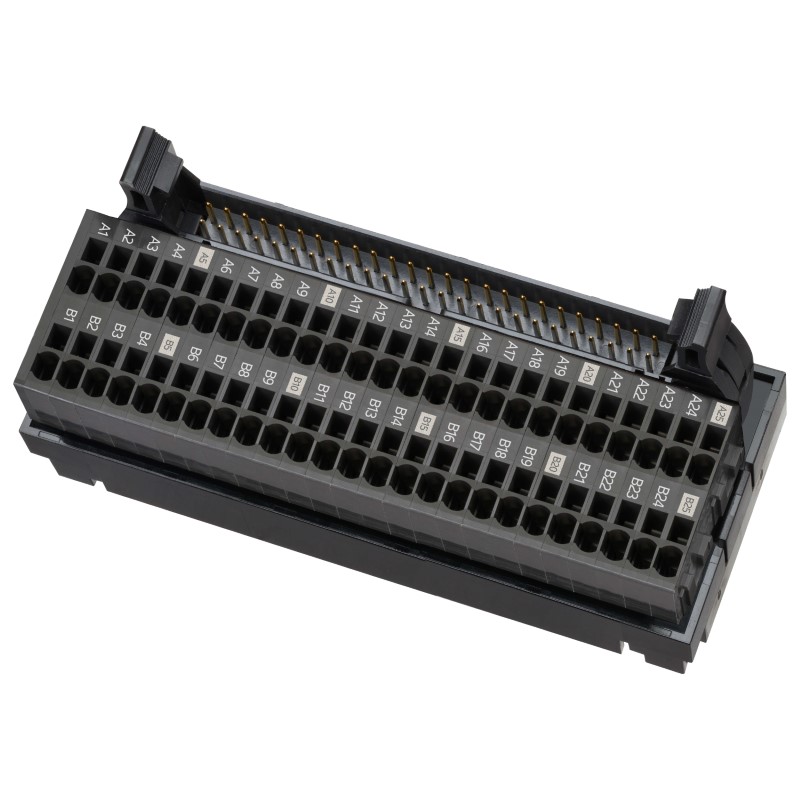 XW2K-50G-T; General purpose interface wiring system with push-in plus technology, 50 points MIL connector, Input/Output, 1 A, NPN/PNP, 125 VAC, 30 VDC, DIN rail horizontal and vertical mounting