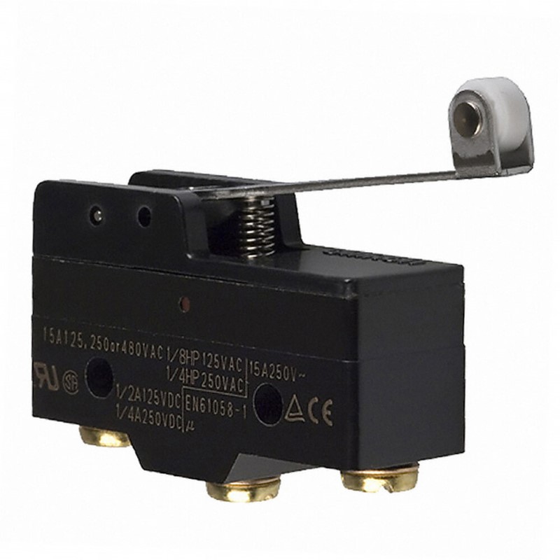Z-15GW2-B7-K; General purpose basic switch, hinge roller lever, SPDT, 15A, screw terminals